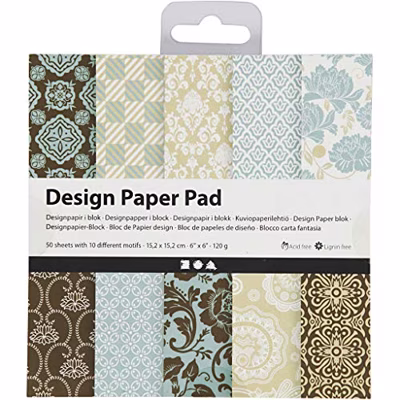 Creativ Company Design papierblok, vel 15,2x15,2 cm, 120 gr, lichtblauw, bruin, 50 vel/ 1 doos