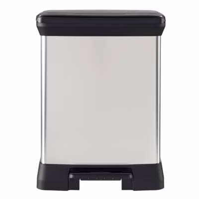 45,69De Curver Decobin Afvalbak - Rechthoekig - 30L heeft de uitstraling van metaal en de voordelen van kunststof. Roest niet, deukt niet, is licht van gewicht, eenvoudig te reinigen en vingerafdrukken zijn niet zichtbaar. Deze vuilbak is voorzien van een breed en comfortabel pedaal en een flexibele rand in het deksel waardoor nare geurtjes niet kunnen ontsnappen. Verder heeft het deksel een soft-close mechanisme waardoor het geruisloos sluit. Een andere voordeel van deze Decobin is dat de vuilniszak op zijn plaats wordt gehouden door twee beugels in de bak. Door de beugels is de vuilniszak van buitenaf niet zichtbaar. Daarnaast is deze afvalbak ook een duurzame oplossing doordat hij is gemaakt van 80% gerecycled kunststof. Kortom een product dat onmisbaar is in jouw huishouden.