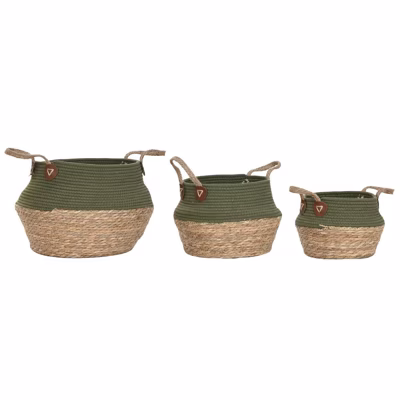 Decoratieve Doos Home ESPRIT Groen Natuurlijk Natuurlijke Vezel (3 Onderdelen)