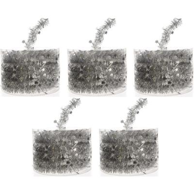 5x deze zilveren kerstslinger met sterren van Decoris voegt een sprankelend accent toe aan je kerstdecoraties. De smalle folie slinger, met een diameter van 3,5 cm en een lengte van 700 cm, is perfect om je kerstboom of andere versieringen te verfraaien. De zilveren kleur en de stervormige details passen prachtig binnen de thema's Christmas Silver, Mystic Christmas en Elegant Christmas, en brengen een elegante en feestelijke sfeer in je huis.