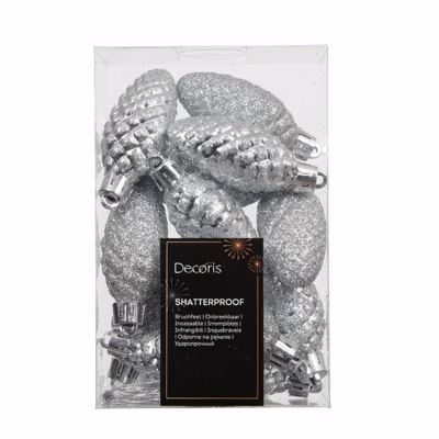 Dennenappel kunststof L9h14 cm zilver 12 st Shatterproof Decoris - Decoris