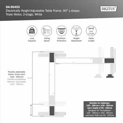 Met het elektrisch in hoogte verstelbare tafelframe van Digitus kunt u heel eenvoudig uw bureau veranderen in een ergonomische staande/zitwerkplek. Bespaar tijd en geld om een in hoogte verstelbaar...