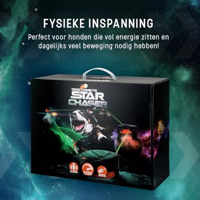 Met de Dog Comets Star Chaser kan elke hond perfect zijn of haar energie kwijt. De Star Chaser kan binnen enkele minuten op een grasveld opgezet worden, zodat honden achter het 'aas' aan kunnen rennen. Dit zorgt niet alleen voor fysieke inspanning (perfect voor honden die vol energie zitten en dagelijks veel beweging nodig hebben), maar ook voor mentale stimulatie (ideaal voor honden die toe zijn aan een nieuwe uitdaging). Met de afstandsbediening kan eenvoudig de snelheid worden aangepast en de richting waarin het 'aas' zich beweegt, voor een interactief spel tussen hond en baasje.