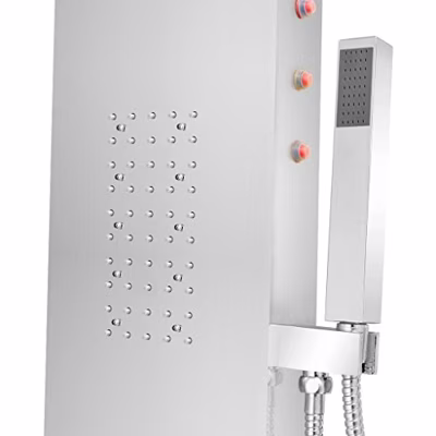 Dit multifunctionele douchepaneelsysteem heeft een stijlvol ontwerp en is een geweldige toevoeging aan je badkamer. De douchetoren is gemaakt van duurzaam roestvrijstaal, heeft een geborstelde afwerking en een prachtig gebogen ontwerp. Hij heeft 4 functies: regen, waterval, massagejets en normaal. Deze kunnen eenvoudig geselecteerd worden met een knop. De LED-lampen kun aan- en uitgezet worden, afhankelijk van je stemming. De watertemperatuur is verstelbaar met de thermostaatknop. Ga op in een werkelijk ontspannende douche-ervaring en geniet van de moderne stijl van dit prachtig ontworpen douchepaneelsysteem! Let op: gasgeisers en zonneboilers zijn niet geschikt voor gebruik met thermostatische kranen. Kraanwater dat poedervormig bezinksel, vaste klonten of zachte voorwerpen bevat, kan de gevoeligheid van de thermostatische ventielkern verminderen en de levensduur van de thermostatische kraan verkorten.