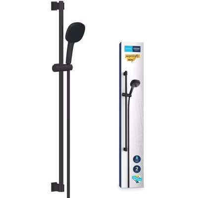 Doucheset met 2-straals douchekop, 90cm staaf en flexibele slang - GROHE Vitalio Comfort 110 269302431 - Waterbesparend - Mat Zwart