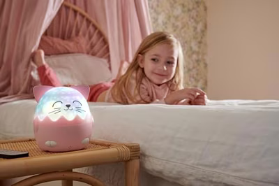 Draadloos muzikaal nachtlampje - BIGBEN - Cat - 360° projectie, 13 films, 8 melodieën, afstandsbediening, USB-C batterij