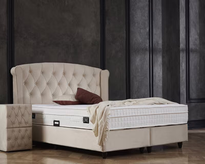 De levertijd van de 140 x 200 cm boxspring bedraagt 5-10 werkdagen. De levertijd van de varianten 160 x 200 en 180 x 200 cm bedraagt 8-10 weken. Na een bestelling wordt een leveringsafspraak gemaakt door de leverancier. Deze Aurora tweepersoons boxspring is een  luxe boxspring met opbergruimte in de box en is voorzien van een handgemaakte en luxe velvet stoffering. Hierdoor heeft het bed een stijlvolle en opvallende uitstraling. Het bed wordt geleverd met een geknopt design hoofdbord en heeft een lengte van 200 centimeter. In de box is opbergruimte aangebracht met een inhoud tot maar liefst 1080 liter. Ideaal voor het opbergen van seizoenskleding, schoenen, beddengoed en boeken. Bij aankoop van de Aurora boxspring ontvang je niet alleen de boxspring, maar ook een luxe matras van maar liefst 27 centimeter dik. Het pocketvering matras heeft 7 comfortzones en is voorzien van een luxe witte tijk. Daarnaast zijn de pocketveringen verpakt in anti-schimmel hoesjes en is het volledig luchtdoorlatend, zodat het optimaal ventileert terwijl je slaapt. Luxe Velvet stofferingDe stof van het hoofdbord en de boxen bestaan uit een premium en slijtvaste velvet stof textiel. Het gehele hoofdbord is 130cm hoog is luxueus gewatteerd zodat het heerlijk zacht aanvoelt wanneer je er tegenaan leunt om te lezen of televisie te kijken. Waarom kies je voor de Aurora Boxspring?  * Een boxspring met slimme opbergruimte om kleding, boeken of andere spullen op te bergen  * Chique en stijlvol design en geeft je slaapkamer een luxe uitstraling  * Gemaakt van hoogwaardig velvet materiaal en een sublieme afwerking  * Een luxe hoofdbord van 130cm hoog voor een mooie finishing touch  * Past in ieder interieur  * Keuzemogelijkheid uit de formaten 140x200, 160x200 en 180x200 cm  * Zeer goed matras van 27cm hoog met pocketvering voor optimaal lig- en slaapcomfort  * Unieke beige stoffering (OEKO-TEX gecertificeerd)  * Opbergruimte tot 1080 liter  * Openen vanaf de voorzijde  * Een veermechanisme voor makkelijk en veilige openen  * Inclusief meegeleverd pocketvering matras  * Maximale belasting van 130 kilogram  * Gemakkelijk te monteren  * Bijpassende nachtkastjes verkrijgbaar! Bekijk ze hier (https://www.budget-bed.nl/collections/boxspring-accessoires) Luxe hoofdbord met luxe designDeze tweepersoons boxspring beschikt eveneens over een hoofdbord met een uitmuntend afwerkingsniveau. De velvet stof met knopen in combinatie met de beige kleur zorgen voor een luxe en chique uitstraling. Ook zorgt dit hoogwaardige hoofdbord ervoor dat je probleemloos rechtop in bed kan zitten om voor het slapen gaan nog een boek te lezen of je favoriete film of serie te kijken.Inclusief pocketvering matrasDe boxspring wordt geleverd met een kwalitatief hoogwaardig matras van 27cm hoog met 7 comfortzones welke is voorzien van 300 bonnell veren per vierkante meter. Dit zorgt ervoor dat je op ieder moment optimale lig- en slaapcomfort ervaart, zodat je iedere ochtend weer uitgerust en vol energie wakker wordt. De pocketveringen zijn in anti-schimmel hoesjes verpakt, wat zorgt voor hygiëne, een goede ventilatie en extra ondersteuning tijdens het slapen. DuurzaamheidDe boxsprings van Dreamhouse zijn gemaakt van hoogwaardig materiaal en beschikken eveneens over een hoogwaardig afwerkingsniveau. Door de lange levensduur (bij normaal gebruik 7-10 jaar) kun je lang genieten van deze boxspring. Verzendkosten van een boxspringDe kosten voor de levering van onze boxsprings bij jouw thuis bedragen € 19,95. Deze kosten worden direct aan je bestelling toegevoegd in de winkelwagen. Wij leveren de boxspring tot de eerste drempel. Bij een appartement is de eerste drempel de ingang van het gebouw. Optie: montage bij leveringWil je geen omkijken naar het monteren van de boxspring? Bestel dan eenvoudig de boxspring met montage voor een meerprijs van €50,-. Wij monteren de boxspring in de gewenste kamer en nemen al het verpakkingsmateriaal vervolgens weer mee. Lekker simpel! BetalingBetaal je de aankoop liever niet in één keer? Maak dan gebruik van in3: de enige gespreid betaalmethode met 0% rente. In drie keer betaal je het aankoopbedrag zonder extra kosten. Deze optie staat vermeld bij de betaalopties in het bestel- en afrekenproces.Inhoud verpakking  * 1x Dreamhouse Pocketvering matras 140, 160 of 180cm  * 2x Dreamhouse Onderbox 140, 160 of 180cm met opbergruimte  * 1x Design hoofdbord  * 12x Zwarte kegel poten  * 1x Montagemateriaal Productspecificaties  * Merk: Dreamhouse  * Serie: Aurora  * Kleur: Beige  * Maatvoering: Tweepersoons  * Belasting: Tot 130 kg  * Capaciteit opbergruimte: tot 1080 liter  * Soort veren: Pocketveringen  * Aantal veren matras: 300 per m²  * Comfortzones: 7  * Hoofdbord: Incl. geknoopt hoofdbord met luxe design  * Soort poten: Kegel, zwart  * Frame: Opbergruimte  * Kern boxspring: Opbergruimte  * Opbergruimte: tot 1080 liter  * Stof: Velvet Plane  * Anti-huisstofmijt: Ja  *