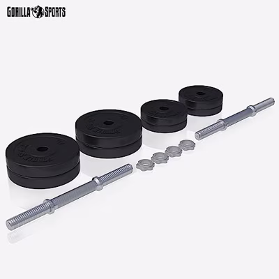 ✔ Kunststof ✔ 20 kg ✔ Halterschijven: 4 x 2,5 kg, 4 x 1,25 kg ✔ 2 chromen stangen, doorsnede 30/31 mm ✔ Verstelbaar ✔ Borst, biceps, triceps, schouders en rug ✔ Bestel deze dumbell, dumbbell. dumbells, dumbbells, dumbellset, dumbbellset. Wil je jouw thuisfitness naar een hoger niveau tillen met veelzijdige en betaalbare apparatuur? Ontdek dan de Dumbellset 20 kg Kunststof van Gorilla Sports! Perfect voor zowel beginners als gevorderden die hun kracht- en uithoudingsvermogen willen verbeteren. Met deze set kun je gemakkelijk thuis aan de slag, zonder dat je naar de sportschool hoeft. Dumbbell set 20 kg Kunststof in detail:  * Gewicht: 2 x 10 kg - Totaal 20 kg  * Inhoud: 4 x 1,25, 4 x 2,5 kg halterschijven, 2 dumbbellstangen en 4 schroefsluitingen  * Boring: 30 mm  * Materiaal halterschijven: Kunststof gevuld met cement  * Materiaal halters: Verchoomd staal  * Afmeting 1,25 kg gewicht: Diameter 16,5 cm - Dikte 3,3 cm  * Afmeting 2,5 kg gewicht: Diameter 21 cm - Dikte 4,3 cm  * Lengte dumbellstang: 35 cm  * Opname gebied stang: 10,5 cm  * Diameter stang: 30 mm Deze halterset is jouw ideale partner voor een veelzijdige training thuis. Of je nu spiermassa wilt opbouwen, aan je uithoudingsvermogen wilt werken of vet wilt verbranden, met deze set kan het allemaal. Geschikt voor een breed scala aan oefeningen, van biceps curls en triceps extensions tot shoulder presses en chest flies. Je kunt je hele lichaam effectief trainen en je fitnessdoelen sneller bereiken. De kunststof coating zorgt bovendien voor minder geluid en minder schade aan je vloer, wat deze set ideaal maakt voor thuisgebruik.Verbeter je fysieke conditie en werk aan je droomlichaam met de Dumbellset 20 kg Kunststof. Dit is niet zomaar fitnessapparatuur; het is een investering in je gezondheid en welzijn. Met deze set heb je alles in huis om je training divers en uitdagend te houden.Maak de stap naar een fitter en gezonder leven. Voeg deze essentiële set toe aan je thuisgym en ervaar de flexibiliteit en het gemak van thuis trainen. Waar wacht je nog op? Verrijk je fitnessroutine nu!