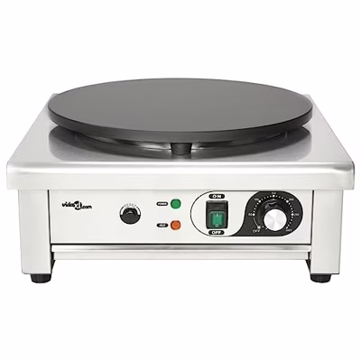 Onze elektrische crêpemaker maakt het eenvoudiger en gemakkelijker om heerlijke crêpes en pannenkoeken te bereiden. Hij is ideaal voor professionals en doe-het-zelvers. De crêpemaker heeft een massieve constructie. De behuizing is gemaakt van roestvrij staal, dat krasbestendig en duurzaam is. De gietijzeren plaat is vervaardigd met een speciale anti-aanbaklaag. Het apparaat is eenvoudig te bedienen. Wanneer je hem op het stopcontact aansluit, zal het groene indicatielampje gaan branden. Vervolgens kan je de thermostaat op de juiste temperatuur instellen. Het apparaat begint op te warmen wanneer het oranje indicatielampje brandt. Het apparaat warmt zeer snel op dankzij het vermogen van 3.000 watt. Het heeft een uittrekbaar lekbakje onder de plaat voor eenvoudige reiniging. Een houten deegverdeler is ook inbegrepen om het deeg gelijkmatig op de plaat aan te brengen.