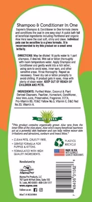 Espree Shampoo En Conditioner 2 In 1 Kat 355 mlDe Espree Shampoo En Conditioner 2 In 1 Kat 355 ml is een kattenshampoo en conditioner in één, met Aloë Vera voor een zachte en glanzende vacht. Deze shampoo en conditioner in één komt uit een lijn met zachte en effectieve verzorgingsproducten die gemaakt zijn met verzachtende Aloë Vera om de huid en vacht van jouw huisdier te reinigen én te verzorgen. De gehele lijn is veilig te gebruiken in combinatie met vlooienmiddelen.Door deze 2 in 1 variant te gebruiken, was en verzorg je de vacht in één eenvoudige stap. De combinatie van Aloë Vera, provitamine B5 en cleansers op kokosnootbasis zorgt voor een schone, zachte en stralende vacht. De vacht krijgt een heerlijke geur van tropisch fruit!- Shampoo en conditioner in één- Heerlijke geur van tropisch fruit- Met Aloë Vera, Provitamine B5 en cleansers op kokosnootbasis- Voor een schone, zachte en glanzende vacht- Veilig in combinatie met vlooienmiddelenInhoud: 355 mlEAN: 0748406010826
