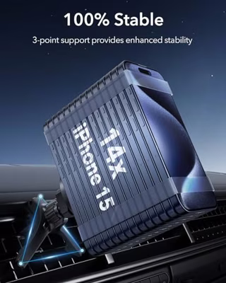 De magnetische vergrendeling zorgt voor absolute stabiliteit tijdens het rijden door eenvoudig uw mobiele telefoon op te hangen en kan op elk ventilatietype worden aangebracht.