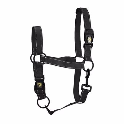 Kies voor veiligheid en gemak met de nieuwste halsters van Excellent Horse; de Premium halsters! Dezelfde uitstekende kwaliteit als de Essential halsters, maar met een extra uitrusting van reflecterende details. Zo is uw paard extra goed zichtbaar in het donker. Op de neusriem en het kopstuk zijn handige klikgesp-sluitingen en een gemakkelijk bedienbaar verstelsysteem verwerkt, waardoor het halster gemakkelijk om te doen en te verwijderen is. Ook kan de pasvorm van het halster perfect aan uw paard of pony aangepast worden. Het materiaal van het halster bestaat uit extra dicht gewoven nylon, waardoor het halster zacht, flexibel en slijtvast is.