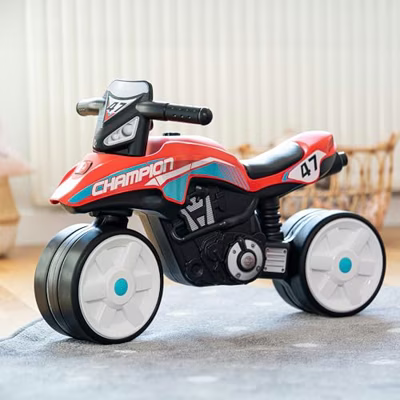 Maak je klaar om je kleine piloot te zien op zijn Street Champion ride-on moto. Hij is 100% gemaakt in Frankrijk en bestaat voor 40% uit gerecycled plastic. Hij is speciaal ontworpen voor kinderen van 2 tot 5 jaar die op zoek zijn naar sensatie. De grote wielen zorgen niet alleen voor de nodige stabiliteit zodat je kind in alle veiligheid zijn evenwicht en motoriek kan ontwikkelen, maar zijn ook uitgerust met stille loopvlakken die perfect geschikt zijn voor gebruik binnenshuis. Ouders zullen blij zijn!