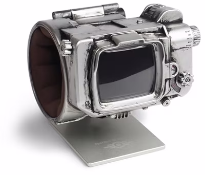 A 1:1 faithful replica of the Fallout Series Pip-Boy Die-Cast Replica as seen in the Fallout TV series. Created using the TV show geometry and made in a mix of die-cast metal and injection moulded ABS, the Pip-Boy has a functioning TFT LCD screen showing in-universe animations and is also a working time-piece with an in-universe alarm clock function. Die-cast metal front casing, engineering injection-moulded ABS body with a memory foam cuff, all come together in the perfect balance of authentic materials, which individually distressed by hand. With animated screens straight out of the Fallout universe displayed in glorious monochrome green. Each screen is authentically accessed via the control dial on the side of the casing. The back of the stand has an integral socket holder to make sure that the USB-C charging cable is kept neat and tidy.Product Specifications:- Die-cast metal front casing, hand-painted weathered finish- TFT LCD display- Timepiece with in-universe clock/watch display with alarm function- Memory foam cuff- Display stand- Rechargeable internal Li-Po battery charged via USB-C