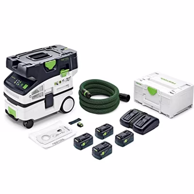 Festool CTLC MINI I-Plus: Compacte Accustofzuiger De Festool CTLC MINI I-Plus is een compacte accustofzuiger die werkt op twee 18V accu's, wat een totaal van 36V turbinekracht oplevert. Deze stofzuiger biedt prestaties die vergelijkbaar zijn met die van een traditionele stofzuiger met snoer, maar met het voordeel van volledige onafhankelijkheid van stopcontacten. Ideaal voor diverse schoonmaaktaken, bevordert deze stofzuiger een gezondere werkomgeving door stofblootstelling te minimaliseren. Belangrijkste kenmerken van de Festool CTLC MINI I-Plus * Krachtige zuigkracht dankzij de 36V turbine, vergelijkbaar met gesnoerde stofzuigers. * Onafhankelijkheid van stopcontacten met 2 x 18V accu's. * Stofvrije toepassingen in combinatie met Festool accu-machines. * Compact en lichtgewicht voor eenvoudige mobiliteit.