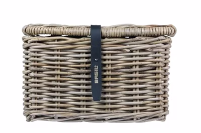 De Basil Dax S met deksel is een stijlvolle en handgevlochten rotan fietsmand, perfect voor montage aan de voorkant van een dames- of herenfiets. Deze mand is stevig, licht van gewicht en uiterst praktisch voor het vervoeren van je boodschappen, schooltas of andere spullen. Dankzij de deksel met lederen sluiting blijven je spullen veilig opgeborgen tijdens je rit. Eigenschappen: Handgemaakt van sterk rotan - Duurzaam, lichtgewicht en milieuvriendelijk. Inclusief deksel met sluiting - Houdt je spullen veilig en beschermd. Compact en praktisch - Perfect voor dagelijks gebruik en kleine boodschappen. Veelzijdig in gebruik - Ideaal voor transportfietsen, maar ook geschikt voor andere fietsen. Natuurlijke charme - Elk exemplaar is uniek en kan licht variëren in afmeting. Let op: De Basil Dax S wordt zonder bevestigingsmateriaal geleverd, zodat je zelf de beste montageoptie kunt kiezen. Kies voor stijl, functionaliteit en veiligheid met de Basil Dax S en geniet van een praktische én elegante fietsmand!EAN: 8715019130878