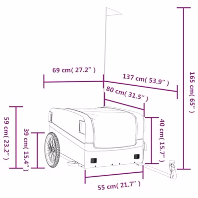 Deze veelzijdige en stevige fietskar is ideaal voor het transporteren van zware goederen, dankzij het draagvermogen van 45 kg. Stevig materiaal: ijzer is een sterk en hard materiaal. Het is een vaste favoriet in de industrie en meubelmakerij. Deze fietsaanhanger is gemaakt van ijzer en is zeer stevig en duurzaam.Praktisch ontwerp: deze fietskar heeft een draagvermogen van 45 kg en is perfect voor het trekken van zware goederen, zoals bagage, planten, gereedschappen of boodschappen.Doordacht ontwerp: de fietskar heeft een trekhaak waardoor hij eenvoudig aan een fiets kan worden gekoppeld. Ook is er een veiligheidsvlag inbegrepen voor extra zichtbaarheid.