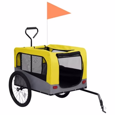 Deze functionele 2-in-1 dierenfietstrailer kan in enkele seconden gemakkelijk worden veranderd van een fietskar naar een loopkar voor huisdieren. Hij is ideaal voor honden en andere huisdieren. De huisdierenfietskar heeft een stevig stalen frame en is gemaakt van oxford stof, waardoor de kar waterbestendig, duurzaam en gemakkelijk te onderhouden is. De mesh vensters aan beide kanten zorgen voor maximale luchtcirculatie, terwijl de voor- en achterkant beiden een ingang hebben voor het gemak. Deze huisdierentrailer heeft vering voor een soepele rit, en een voorwiel dat 360 graden kan draaien voor tijdens het wandelen. De draaiende veiligheidsverbinding zorgt ervoor dat de trailer blijft staan, zelfs als de fiets omvalt. De dierenfietstrailer heeft een snelkoppeling om hem makkelijk aan een fiets te koppelen. De trekstang kan ingeklapt worden om ruimte te besparen.