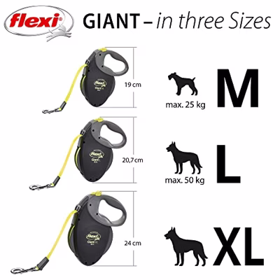 43,04De Flexi Giant L is een hondenriem voor grote en sterke honden. Deze band rollijn is namelijk geschikt voor honden met een gewicht van maximaal 50 kg. De lijn is 8 meter lang en is reflecterend, zodat de lijn in het donker goed zichtbaar is. Er is sprake van een gecontroleerde vrijheid, doordat je zelf kan bepalen hoeveel meter je jouw hond geeft. Door middel van de karabijnhaak kun je de riem bevestigen aan de halsband of het harnas van jouw hond. - Gecontroleerde bewegingsvrijheid Lengte lijn: 8 meter