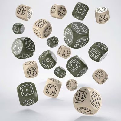 Prepare to conquer the gaming realm with the Fortress Compact D6: Beige & Olive! Featuring 20 hexahedrons in a compact 14mm size, divided into two groups by background color, these dice ensure you're always equipped for adventure.Versatility is the defining feature of these dice. Whether you're engaged in dynamic skirmishes or embarking on epic wargame campaigns, they seamlessly adapt to any gaming scenario. Say goodbye to the hassle of searching for extra dice during RPG sessions - unleash potent spell damage with ease. Whether used as regular dice or additional markers in board and card games, their potential is limitless, limited only by your imagination.Crafted with precision and comfort in mind, the compact size ensures a perfect grip, granting you complete control during gameplay. Their slightly rounded edges ensure consistently smooth rolls, while the dot design simplifies result counting, even for larger pools. And with an attractive price point, your gaming experiences are guaranteed to be unforgettable.But these dice are more than just gaming tools - they're works of art. Inspired by a medieval fortress, symbolizing the impregnable defenses you employ in your strategies, their elegant design captivates from the first glance. The beige and olive backgrounds with intricate black and white paintings create a dynamic and enchanting color palette that enhances every gaming session.Make these dice an indispensable part of your collection and let them accompany you on every adventure, encounter, and quest in the gaming universe. With the Fortress Compact D6: Beige & Olive by your side, victory is within reach!Content:- 20x W6 Dice 14mm, evenly divided in two colours