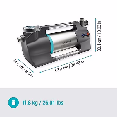 De in Duitsland ontworpen GARDENA Besproeiingspomp 6500 SilentComfort is extreem krachtig met een stroomverbruik van 1300 watt. De pomp bereikt een enorm hoog debiet van 6500 liter per uur bij een druk van 6 bar, met matige bedrijfskosten. Geluidsarme werking dankzij geavanceerde, watergekoelde meertrapstechnologie De innovatieve en watergekoelde meertrapstechnologie maakt deze besproeiingspomp uitzonderlijk stil met een maximaal geluidsniveau van slechts 46 dB op 5 meter afstand. Het water koelt niet alleen de motor, maar vermindert ook trillingen. Bluetooth verbinding met tal van praktische functies Door de Bluetooth verbinding kunnen alle functies via de smartphone of tablet bediend worden. Zo kan er bijvoorbeeld een timer ingesteld worden voor een bepaalde tijd. Het bewateringsschema bepaalt wanneer er water gegeven wordt. Het systeem kan geoptimaliseerd worden door de apart verkrijgbare Bodemvochtigheidssensor (art. nr. 1867-20) om waterverspilling te voorkomen en gezonde planten te krijgen. Weerbestendig De Besproeiingspomp 6500 SilentComfort is weerbestendig en kan het hele tuinseizoen buiten blijven staan, ook bij aanhoudende regen of bij vochtig en mistig weer. Hierdoor kan de pomp efficiënt ingezet worden, bijvoorbeeld bij een put. Zelfbeschermingsfuncties en geïntegreerd filter De Besproeiingspomp schakelt automatisch uit als er bijvoorbeeld geen water meer opgepompt kan worden, of als de pomp oververhit raakt. De automatische droogloopbeveiliging voorkomt dat de pomp oververhit raakt en schade veroorzaakt. Het geïntegreerde filter beschermt bovendien tegen vuildeeltjes in het water. Hoogwaardige materialen en een duurzaam ontwerp De duurzame Besproeiingspomp 6500 SilentComfort is gemaakt van hoogwaardige materialen zoals RVS voor de aansluitingen en het motorhuis, en aluminium handgrepen. Eenvoudige, analoge bediening via LCD-scherm Als alternatief voor de Bluetooth verbinding zijn alle functies (behalve het aanmaken van een besproeiingsschema) van de Besproeiingspomp 6500 SilentComfort, op de ouderwetse manier te bedienen via het verlichte LCD-scherm. Handig en zeer gebruiksvriendelijk De dubbele uitlaat - waarvan er één zelfs 180° gedraaid kan worden - maakt gelijktijdig gebruik van twee aangesloten apparaten mogelijk. Door de grote filteropening van de pomp kan deze eenvoudig zonder trechter, met water gevuld worden en bij kans op vorstschade, via de afvoer geleegd worden. De ergonomische handgreep zorgt voor een comfortabel en veilig transport.