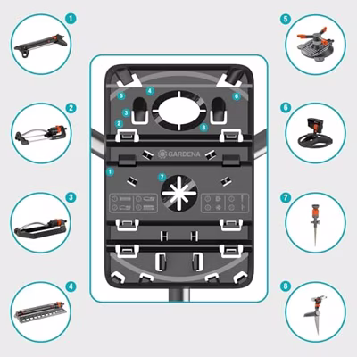 - Compatibiliteit: Geschikt voor alle Gardena cirkel-, vierkante, sproei- en multi-vlaksproeiers
