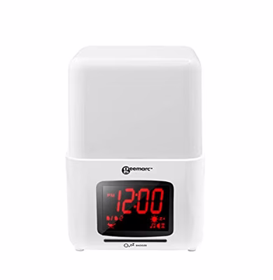 Door de nieuwe Geemarc-lichtwekker met vibratiekussen zult u 's ochtends anders wakker worden. Dankzij zijn functie Zonsopkomstsimulatie wordt het LED-licht geleidelijk feller, net als de opkomende...