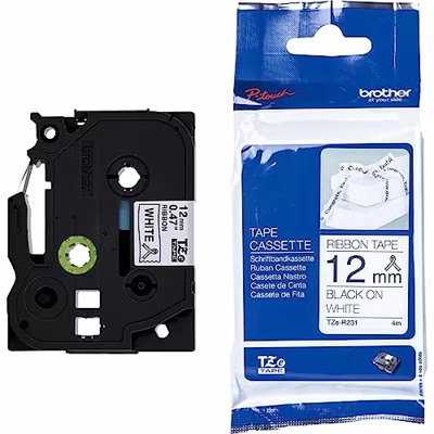 Gelamineerde Tape voor Labelmakers Brother TZE-R231 Zwart Zwart/Wit