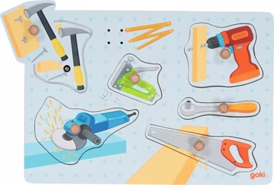 Goki houten vormenpuzzel gereedschap met geluid, 6st.