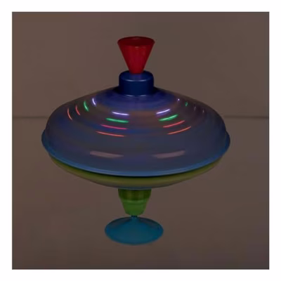 Een klassiek metalen, zoemend topje. Maar deze Goki-tol komt duidelijk uit de toekomst of op zijn minst uit een verre uithoek van het oneindige heelal. Wanneer de draaiende top in beweging wordt gezet, hoor je het klassieke zoemende topgeluid. Maar dat is nog niet alles! De ingebouwde LED-verlichting zorgen voor een buitenaards lichtspektakel. Natuurlijk, het effect is het meest indrukwekkend in het donker. De prikkel om te spelen is enorm en de motoriek wordt ook nog eens op een zeer intensieve en speelse manier getraind. Dat is hoe een speelgoed zou moeten zijn. Afmeting: 21 cm hoog, diameter 18,5 cm. Materiaal: metaal en kunststof. Geschikt voor kinderen vanaf 1 jaar oud.