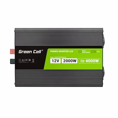 Green Cell Przetwornica napicia PowerInverter LCD 12 V 2000W/40000W Przetwornica samochodowa z wywietlaczem - czysty sinus netvoeding & inverter Auto Zwart