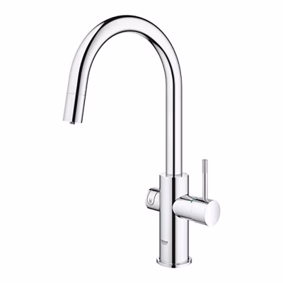 GROHE Blue Home Keukenkraan - uittrekbare c uitloop - 1 gats - filterfunctie - plat licht en bruisend water - chroom 31541000