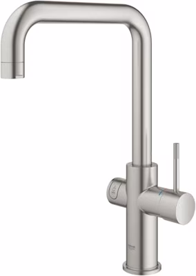 Grohe Red kokend water kraan met U-uitloop inclusief boiler supersteel De Grohe Red kokend water kraan met U-uitloop boiler zorgt direct voor kokend heet water vanuit de keukenkraan. Met één druk op de knop wordt het water verwarmd tot een temperatuur van 100°C, waarmee je direct een lekker kopje thee zet of gebruikt tijdens het koken. Je oude waterkoker heb je niet meer nodig, waardoor je extra ruimte krijgt op je aanrechtblad. De kraan werkt heel gemakkelijk: je regelt warm en koud water via de greep. Wil je kokend water? Deactiveer dan eerst de kinderbeveiliging en tap vervolgens het kokend water. En wist je dat deze kraan heel lang mooi blijft? Dankzij de Grohe StarLight afwerking blijft de keukenkraan jarenlang glanzen. Bekijk in het onderstaand filmpje meer voordelen en kenmerken van de Grohe Red kokend water kraan. Belangrijkste kenmerken * Chromen keukenkraan met een U-uitloop * Inclusief L-size Grohe Red boiler gemaakt van titanium * Tap direct 5,5 liter kokend water, zonder te wachten * Aansluiting mogelijk op de koud- of warmwaterleiding * Energie A-label met energiebesparende vakantiemodus * Geïsoleerde uitloop met een zwenkbereik van 150°Veiligheid voorop dankzij de Grohe Childlock functie De Grohe Red kokend water kraan is met de geïsoleerde uitloop en Grohe kinderbeveiliging led-functie een veilige kokend waterkraan. De kinderbeveiliging zorgt ervoor dat de heetwaterfunctie niet zomaar in werking kan worden gezet. Je hebt in dit geval alleen toegang tot warm en koud water. Wanneer je deze kinderbeveiliging deactiveert, licht de buitenste led ring rood op. Nu kun je gebruikmaken van de kokend waterkraan. Wanneer je na de deactivatie niet binnen vijf seconden de kraan gebruikt, wordt de kinderbeveiliging automatisch weer geactiveerd. De kinderbeveiliging is TÜV gecertificeerd. Altijd de gewenste temperatuur door Silkmove Hotfill De Grohe SilkMove zorgt ervoor dat de hendel voor warm en koud water een precieze hefboomwerking heeft. Het Hotfill mengventiel mengt warm water met kokend heet water. Zo bereikt het water sneller de 100°C. Hierdoor komt er direct warm water uit de kraan als je de rechterhendel (voor mengwater) van de kraan gebruikt en verspil je dus nauwelijks water tijdens het wachten. De boiler wordt automatisch uitgeschakeld wanneer de gewenste temperatuur is bereikt. Jarenlang plezier door de Grohe StarLight De Grohe Red kokend water kraan is van hoge kwaliteit. De Grohe StarLight afwerking zorgt voor een krasbestendige laag op het design, zodat je hier jarenlang plezier van hebt. Daarnaast is de kraan bestand tegen corrosie en heeft een hele lange levensduur. Kwaliteit gegarandeerd! L-size boiler van titanium De kokend water kraan wordt geleverd met L-size boiler. Dankzij deze boiler kun je 5,5 liter kokend water tappen. De totale capaciteit van de boiler is 7 liter. Het reservoir kan gebruikt worden voor zowel kokend heet water als warm water (bij gebruik met het meegeleverde mengventiel). De boiler is gemaakt van titanium voor een optimale corrosiebescherming. Ga je een paar dagen op vakantie? Zet dan de boiler op de vakantiestand, zo bespaar je weer energiekosten. Wat zit er in de verpakking? * Grohe Red keukenkraan * L-size boiler * 70 cm aansluitslang * Kruisstuk * Wandbeugel * Montagehandleiding * Grohe Red mengventielRecensies Ben je benieuwd wat anderen vinden van de Grohe Red kranen? Bekijk dan deze korte video.