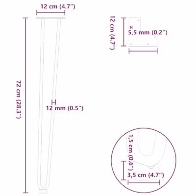 Haarspeld tafelpoten 4 st 72 cm massief staal naturel