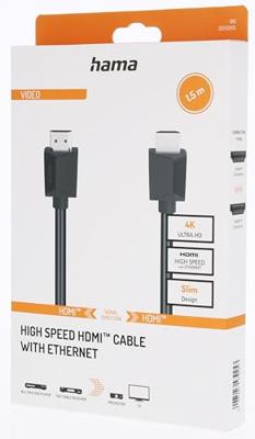 Ervaar perfecte Ultra-HD-bioscoopkwaliteit met de 'Hama HIGH-SPEED HDMI-KABEL, 4K, CONNECTOR - CONNECTOR, ETHERNET, 1,5 M. Deze HDMI™-kabel levert verbluffende beelden met een hoge resolutie van 4096 x 2160 pixels (4K), waardoor je kunt genieten van heldere en gedetailleerde visuals. Voordelen van de Hama HDMI-kabel: * High dynamic range (HDR): Deze kabel optimaliseert de weergave van contrast, kleurdiepte, helderheid en scherpte, wat resulteert in levendige en realistische beelden. Geniet van al je favoriete films, series en games met een ongekende visuele precisie. * Audioweergave: Dankzij de HDMI™-technologie wordt het audiosignaal zonder de noodzaak van aanvullende audiokabels zoals ODT of cinch overgedragen. Dit zorgt voor een nette en eenvoudige installatie. * Netwerkconnectiviteit: Deze kabel ondersteunt netwerkverbindingen via HDMI™, waardoor je profiteert van handige en efficiënte bekabeling voor al je apparaten. * Duurzaam ontwerp: De kabel is ontworpen met
