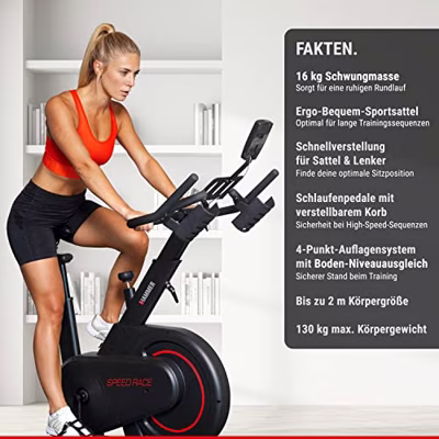 Met de Hammer Speedbike Speed Race breng je jouw fitnessroutine naar een hoger niveau. Deze hoogwaardige speedbike combineert een robuust ontwerp met geavanceerde technologie en ergonomisch comfort, waardoor elke trainingssessie een uitdagende en plezierige ervaring wordt. Of je nu werkt aan je uithoudingsvermogen, vetverbranding of kracht, deze speedbike biedt de perfecte balans tussen intensiteit en gebruiksgemak, geschikt voor zowel beginners als ervaren sporters. Laat je motiveren en ontdek hoe dynamisch trainen je naar nieuwe prestaties kan leiden!