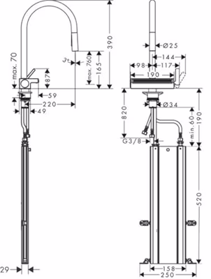 Wereldprimeur: hansgrohe keukenmengkraan met vlakke douchestraal en sBox Met de Aquno Select M81 eengreeps keukenmengkraan 170 met uittrekbare handdouche, 3 straalsoorten en sBox presenteert hansgrohe een nieuw type keukenmengkraan. Voor iedereen die geen compromissen wil sluiten en van perfecte werkprocessen houdt. En voor chef-koks die van design houden! De hoge gebogen uitloop komt boven een prominent podium uit. Daar heeft hansgrohe de revolutionaire SatinFlow-straalsoort ondergebracht. Een zijdezachte, grote douchestraal met 133 ultrafijne afzonderlijke stralen, omhult kwetsbaar voedsel op een zachte en efficiënte manier. Met de geleverde multifunctionele zeef F14 resulteert dit in een optimale workflow en wordt het werken in de keuken een plezier. Watercompetentie van hansgrohe Drie precies op elkaar afgestemde straalsoorten voor een optimaal watergebruik: De kristalheldere laminaire straal vult pannen in een handomdraai. SatinFlow reinigt zacht en spatvrij. De douchestraal is precies en zuinig. Verdere bijzonderheden Intuïtieve keuze van een straalsoort met één druk op de knop (Select)Inclusief slangbox voor maximaal 76 cm lange uittrekbare vuistdouche (sBox). Met magnetische houder (MagFit)Draaibaar in 4 instelbare standen (60°, 110°, 150° of 360°)Kalkaanslag op de siliconen noppen kan eenvoudig worden afgeveegd (QuickClean)Duurzaam keramisch mengsysteem van hansgroheHoogwaardige, onderhoudsvriendelijke chroomfinishTot 15 jaar garantie op onderdelen nadat de serie uit het assortiment is genomenEenvoudige montage Er is een 35 mm standaard kraangat nodig in het midden van de waskom: max. 45 mm afstand tot de wastafelrandAfzonderlijke spoelbakken aanbevolen. Dubbele spoelbak eventueel mogelijkFlexibele, voor drinkwatergebruik gecertificeerde slangen (G ⅜/DN15) voor aansluiten op standaard haakse stopkranen