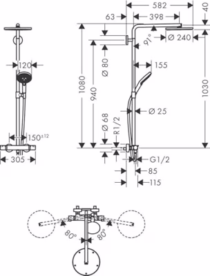 Doucheset HansGrohe Raindance Select S 240 1jet PowderRain Met Thermostaat Mat Zwart Laat uzelf dagelijks verwennen met deze Raindance S Showerpipe van HansGrohe. Deze set bestaat uit een hoofddouche, handdouche, douchethermostaat, doucheslang, schuifstuk en glijstang. Met een douchekop van maar liefst 24 centimeter kunt u maximaal genieten in XXL formaat. De hoofddouche bevat een PowderRain straal, deze bestaat uit vele microdruppels die heerlijk zacht aanvoelen. De handdouche bevat drie verschillende straalsoorten waaruit u gemakkelijk kunt kiezen dankzij de Select-knop. De krachtige Rain straal is ideaal om bijvoorbeeld zeepresten en shampoo uit te spoelen. Geniet van een heerlijke massage met de intensieve Whirl straal. Of kies ook hier voor de PowderRain. De doucheset bevat een Ecostat Comfort thermostaat. Met de geïntegreerde SafetyStop veiligheidsblokkering bij maximaal 40 graden bied de thermostaat bescherming tegen verbranding. Stel vooraf de maximale warm water temperatuur in dankzij de SafetyFunctie. De stijgbuis kan in lengte worden ingekort en de handdouchehouder is in hoogte verstelbaar, zo vind u altijd uw ideale hoogte. De 160 centimeter lange doucheslang is knikbestendig en verdraait niet, hierdoor heeft u altijd voldoende en comfortabele bewegingsvrijheid. Het schoonmaken van uw douche is zeer gemakkelijk dankzij de ingebouwde QuickClean technologie. De flexibele siliconen noppen zorgen voor minder aanhechting van kalkaanslag en vuil. Bovendien kunt u eenvoudig met uw vingertoppen over de noppen wrijven om het vuil te verwijderen! Specificaties Doucheset HansGrohe Raindance Select S 240 1jet PowderRain Met Thermostaat Mat Zwart: * Hoogte: 108 cm * Breedte: 30.5 cm * Diepte: 58.2 cm * Diameter hoofddouche: 24 cm * Diameter handdouche: 12 cm * Materiaal: Messing * Kleur: Mat Zwart * Maat draadaansluiting: G 1/2 * Lengte doucheslang: 160 cm * Aantal standen hoofddouche: 1 * Aantal standen handdouche: 3 * H.O.H: 15 cm * Fabrieksgarantie: 5 Jaar
