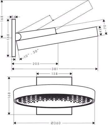 Hoofddouche Rainfinity HansGrohe PowderRain 360 1jet Met Douche-arm Geborsteld Zwart Chroom Deze hoofddouche komt uit de Rainfinity collectie van HansGrohe. Deze set bestaat uit een hoofddouche en muuraansluiting. Ervaar extra doucheplezier met de XXL straalplaat van een diameter van maar liefst 36 centimeter. U wordt als het ware onthult door een heerlijk waterdeken. De PowderRain straal geeft een unieke douche-ervaring dankzij de zachte microdruppels. De douchekop is verticaal verstelbaar tussen de 10 en 30 graden. Zo vind u altijd uw ideale straalhoek. De douche bestaat uit verschillende materialen: het oppervlak van het frame is metaal, de afdekplaat is van aluminium en het oppervlak van de straalschijf is gemaakt van grafiet. Maak de douche eenvoudig schoon dankzij de QuickClean technologie van HansGrohe. Kalkaanslag en vuil verdwijnt als sneeuw voor de zon dankzij deze techniek. Doordat de douche is voorzien van flexibele siliconen noppen kunt u hier eenvoudig overheen wrijven om vuil en kalk te verwijderen. Specificaties Hoofddouche Rainfinity HansGrohe PowderRain 360 1jet Met Douche-arm Geborsteld Zwart Chroom:  * Hoogte: 16.8 cm  * Diameter: 36 cm  * Diepte: 38.1 cm  * Materiaal: Messing  * Kleur: Geborsteld Zwart Chroom  * Aantal standen: 1  * Fabrieksgarantie: 5 Jaar