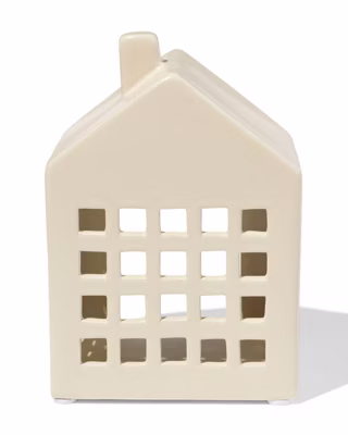 HEMA Theelichthouder 8.4x14.3x10cm keramiek huisje crème