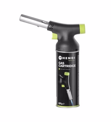 De Hendi BBQ Aansteker / Creme Brulee Brander / Koksbrander - met gasbus - Jet is ontworpen met chef-koks in gedachten. De koksbrander heeft een stijlvol matzwart ontwerp met groene accenten en een ergonomische grip. De bijgeleverde gasbus kan eenvoudig op de koksbrander worden bevestigd. De piëzo-ontsteking maakt ontsteken gemakkelijk, de grote gasknop maakt het eenvoudig om de vlamgrootte en -intensiteit aan te passen. Daarnaast werkt de brander onder elke hoek, zelfs ondersteboven. Ook heeft hij een nauwkeurige vlamcontrole, tot een vlamlengte van 150 mm. De Hendi Creme Brulee Brander wordt geleverd inclusief gasbus.