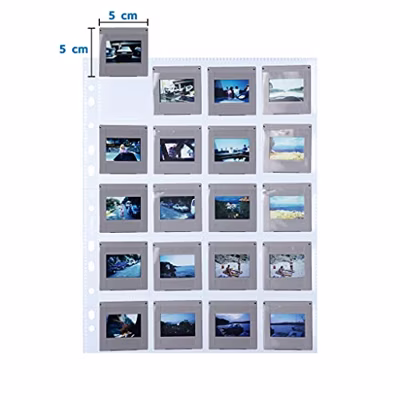 10 Diahoesjes van transparante polypropyleenfolie, weekmaker-vrij, zonder negatieve invloeden op het filmmateriaal. Laboratoriumgetest. De dia's zijn goed beschermd bewaard. De overzichtelijke...