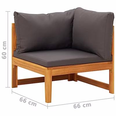 Geniet van een comfortabele tijd in de tuin met vrienden en familie op deze houten hoekbank! Deze tuinbank is gemaakt van massief acaciahout, een hardhout met dichte nerven. Deze prachtig vormgegeven hoekbank is stabiel, duurzaam en opvallend. Het voortreffelijke vakmanschap en de prachtige houtnerven maken elk stuk net iets anders dan de rest. De inbegrepen kussens bieden extra comfort tijdens het ontspannen. Opmerking: om de levensduur van je tuinmeubelen te verlengen, raden wij je aan om de meubelen regelmatig schoon te maken en ze niet zonder bescherming buiten te laten staan.Reinigen: gebruik een milde zeepoplossing.Opbergen: indien mogelijk op een koele, droge plaats binnenshuis opbergen. Als het product buiten wordt opgeborgen, bescherm het dan met een waterdichte hoes. Veeg en droog, na regen of sneeuwval, overtollig water of sneeuw van vlakke oppervlakken af. Zorg voor voldoende luchtcirculatie om vochtschade te voorkomen.