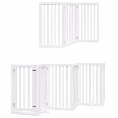 Hondenhek inklapbaar met deur 12 panelen 600cm populierhout wit