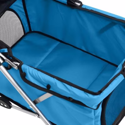 Deze hondenwagen is comfortabel en draagbaar, zodat je lieve honden, katten of andere huisdieren je kunnen vergezellen tijdens buiten- of wandeltochten. Comfortabele en veilige zitplaats: het zonnedak beschermt je huisdier tegen intens zonlicht en zorgt zo voor een gezellige zitervaring. Hij kan uitgetrokken of teruggetrokken worden om aan je verschillende behoeften te voldoen. Gebruik de riem aan de binnenkant van het zitje om je puppy meer veiligheid te geven wanneer hij in de hondenwagen zit.Inklapbare functie: de puppywagen is inklapbaar, waardoor hij ruimtebesparend is en eenvoudig vervoerd kan worden.Ademend gaas: dankzij het ademende gaas zorgt de hondenbuggy voor maximale ventilatie en de beste zichtbaarheid. Ook beschermt hij je huisdieren tegen insecten.Praktische wielen: de voorwielen kunnen in alle richtingen worden gedraaid voor gemakkelijke verplaatsing, terwijl de achterwielen met remmen kunnen helpen om de puppywandelwagen vast te zetten wanneer dat nodig is. Opmerking: Bij elk product wordt een montagehandleiding in de doos geleverd, voor eenvoudige montage.