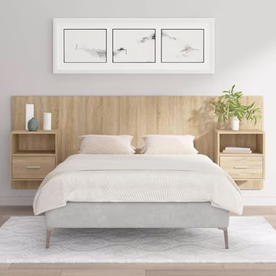 Hoofdbord met kastjes bewerkt hout sonoma eikenkleurig