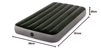 Intex 64107 Prestige Downy 1-persoons luchtbed Geschikt om mee te nemen wanneer je gaat kamperenAfmeting: 191 x 99 cmKleur: groen/grijsWave-beam constructie