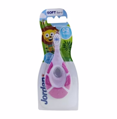 Goede tandheelkundige zorg begint bij de allereerste tand. Het daadwerkelijke moment waarop de eerste tand doorkomt kan per kind sterk verschillen, maar de ouders moeten de tanden van het kind gaan poetsen zodra de eerste tandjes verschijnen. Jordan Step 1 tandenborstel is op maat gemaakt om de eerste poetservaring zo fijn mogelijk te maken. Ontworpen met extra zachte borstelharen, een zachte rubberen bijtring voor het tandvlees van baby's en een handvat dat geschikt is voor zowel grote als kleine handen. Hiermee helpt de Step 1 babytandenborstel om de eerste stap te zetten in het opzetten van gezonde en gelukkige tandheelkundige zorgroutines voor een baby. De korte hals van de tandenborstel voorkomt dat de tandenborstel te ver in de mond van het kind wordt gestoken. Op deze leeftijd dient een tandenborstel onder ouderlijk toezicht gebruikt te worden en daarom is de greep (met duimgat) ook geschikt voor een volwassene.