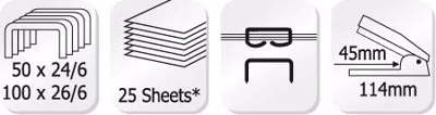 Handige tafelnietmachine voor gebruik onderweg. Geïntegreerde metalen ontnieter. Kunststof body met metalen mechanisme. Bovenlaadmechanisme voor snel herladen. Opbergruimte voor nietjes. Capaciteit maximaal 25 vel. Passend bij perforators 'Trendy'.