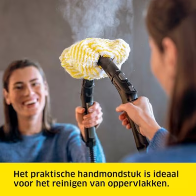De SC 5 EasyFix Iron slaat niet alleen een goed figuur, maar belooft ook volledige reinigingskracht: een uitstekende stoomdruk van 4,2 bar maakt hem tot de beste stoomreiniger in zijn klasse. Dankzij de viertraps stoomregeling kan de stoomstroom naar wens worden aangepast. Een grondige reiniging met de Karcher-stoomreiniger verwijdert 99,999% van de virussen* en 99,99% van alle gangbare huishoudelijke bacteriën** van typische harde huishoudelijke oppervlakken. En dankzij een breed scala aan beschikbare accessoires kan hij gladde oppervlakken, afzuigkappen, hoeken en kieren perfect reinigen. Het bijzonder praktische stoomstrijkijzer dat ook wordt meegeleverd, versnelt het strijken met 50%. Dankzij de VapoHydro-functie kan bovendien heet water worden toegevoegd en hardnekkig vuil gemakkelijker worden verwijderd en weggespoeld. Het flexibele EasyFix-vloermondstuk overtuigt door de indrukwekkende en efficiënte lamellentechnologie. Met behulp van het klittenbandsysteem kan de